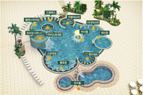 바이탈세러피센터는 태국의 마사지숍을 옮겨놓은 듯하다. 보디마사지, 페이셜 마사지 등 20가지 프로그램을 갖춰 놨다. 추가 비용이 들지만 만족도가 높다. 오감원과 해미원은 몸을 데우는 데 중점을 둔 일본 입욕 문화를 체험할 수 있다.