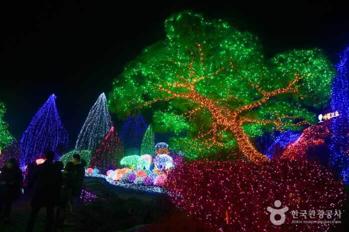 아침고요 수목원 오색별빛정원 전 매년 12월에서 3월 (동절기) 사이 개최되며, 자연과 빛의 조화를 추구하는 국내 최초로 시도된 새로운 빛의 풍경을 선물합니다.