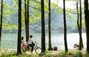 바이크 라이딩은 남이섬을 둘러보는 가장 효과적인 방법으로, 한 시간이면 섬 한 바퀴를 돌 수 있다. 자전거(싱글, 커플, 패밀리), 전기자전거(싱글, 베이비)등을 대여할 수 있다. 특별한 자전거를 원한다면 하늘 자전거를 이용해보자. 가족, 친구, 연인과 함께 페달을 밟으며 남이섬의 경치를 한눈에 내려다볼 수 있다.