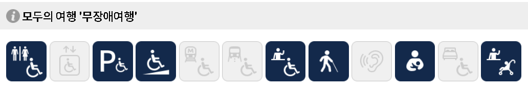 휠체어 대여 가능(3대/화성행궁) 출입통로 주출입구는 턱이 없어 휠체어 접근 가능함.